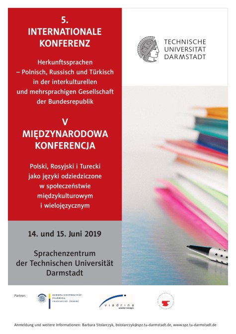 Die Tagung „Herkunftssprachen – Polnisch, Russisch und Türkisch in der interkulturellen und mehrsprachigen Gesellschaft der Bundesrepublik“ ist die fünfte in der Konferenzreihe zur Situation des Polnischunterrichts in Deutschland, Polen und Europa, die vom Sprachenzentrum der Technischen Universität Darmstadt in Zusammenarbeit mit dem Sprachenzentrum der Europa-Universität in Frankfurt/O. an beiden Standorten jährlich abwechselnd organisiert wird. Mit dem Ziel, sich auf andere Sprachen und Kulturkreise zu öffnen, gemeinsam an Fragestellungen zu arbeiten und sich über die Sprachen hinweg auszutauschen, richtet sich die Tagung diesmal an Personen aus der Lehre und Forschung, die sich mit Polnisch, Russisch und Türkisch als Herkunftssprachen im weitesten Sinne befassen.